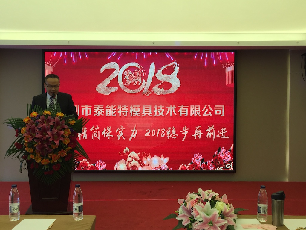 2018年元月27日深圳市泰能特模具技術有限公司“感恩2017前進2018”迎新年會在石巖中濠國際酒店隆重舉行。公司董事長及總經(jīng)理分別在年會上作了新年致辭和“2017精簡保實力,2018穩(wěn)步再前進”的新年工作報告。報告中回顧了公司2017年存在的一些問題和取得的成績及2018年的發(fā)展規(guī)劃。